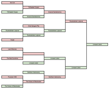 Läntinen divisioonalohko: Hollola sisältää 8 joukkuetta, jotka kaikki pelaavat suoraan pudotuspelejä. Hävittyään joukkue putoaa ja Hollolan voittaja jatkaa varsinaisiin pudotuspeleihin. Pelaajat saavat ilmoittaa tänne yhden joukkueen, joka on pelannut aikaisemmilla kausilla Lihamukiliigassa, mutta s